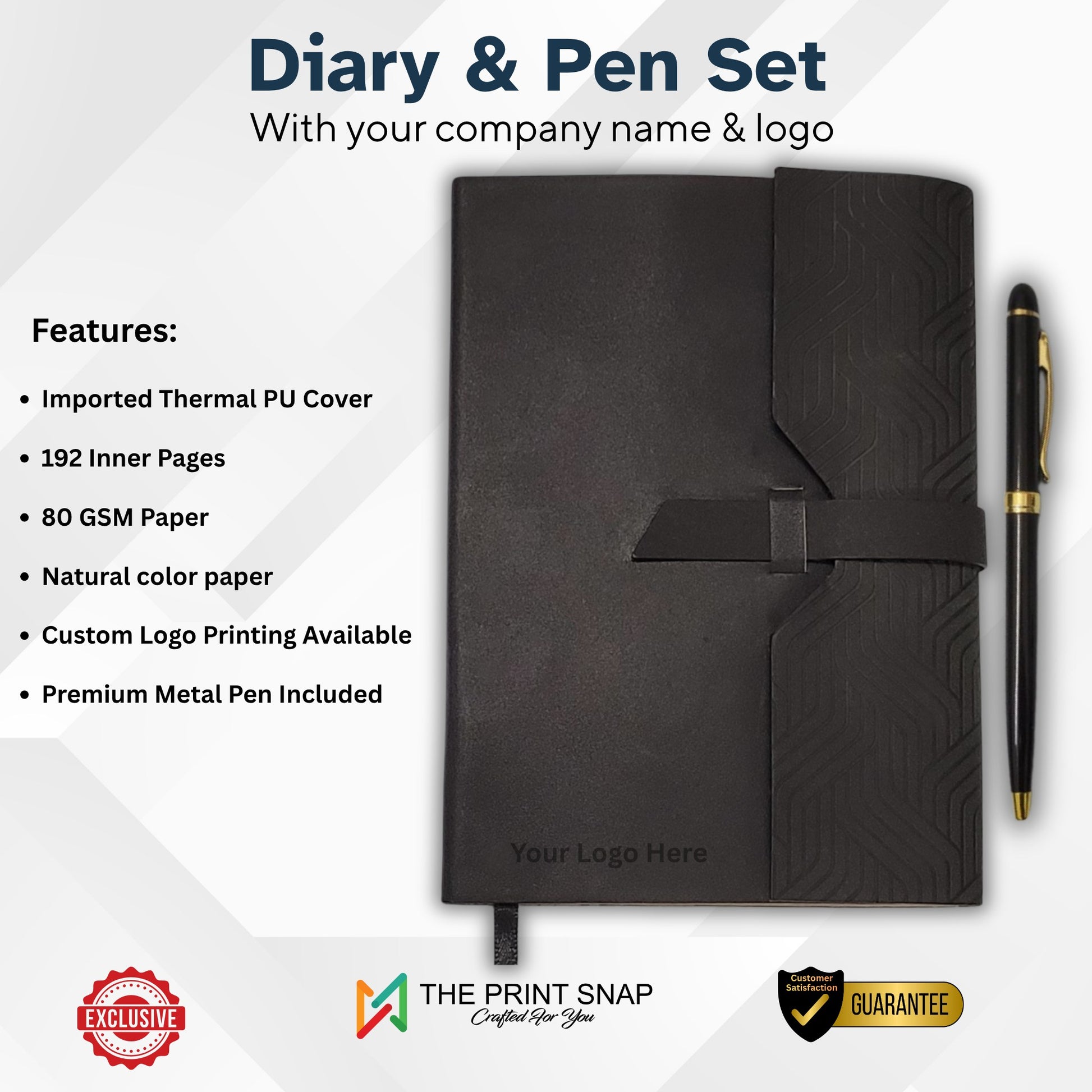 Make every note count with The Print Snap’s Premium Diary & Pen Set, designed for professionals and brands that value elegance and functionality. Ideal for corporate gifting, employee welcome kits, and business promotions, this set can be customized with your company name or logo for an elegant corporate look.