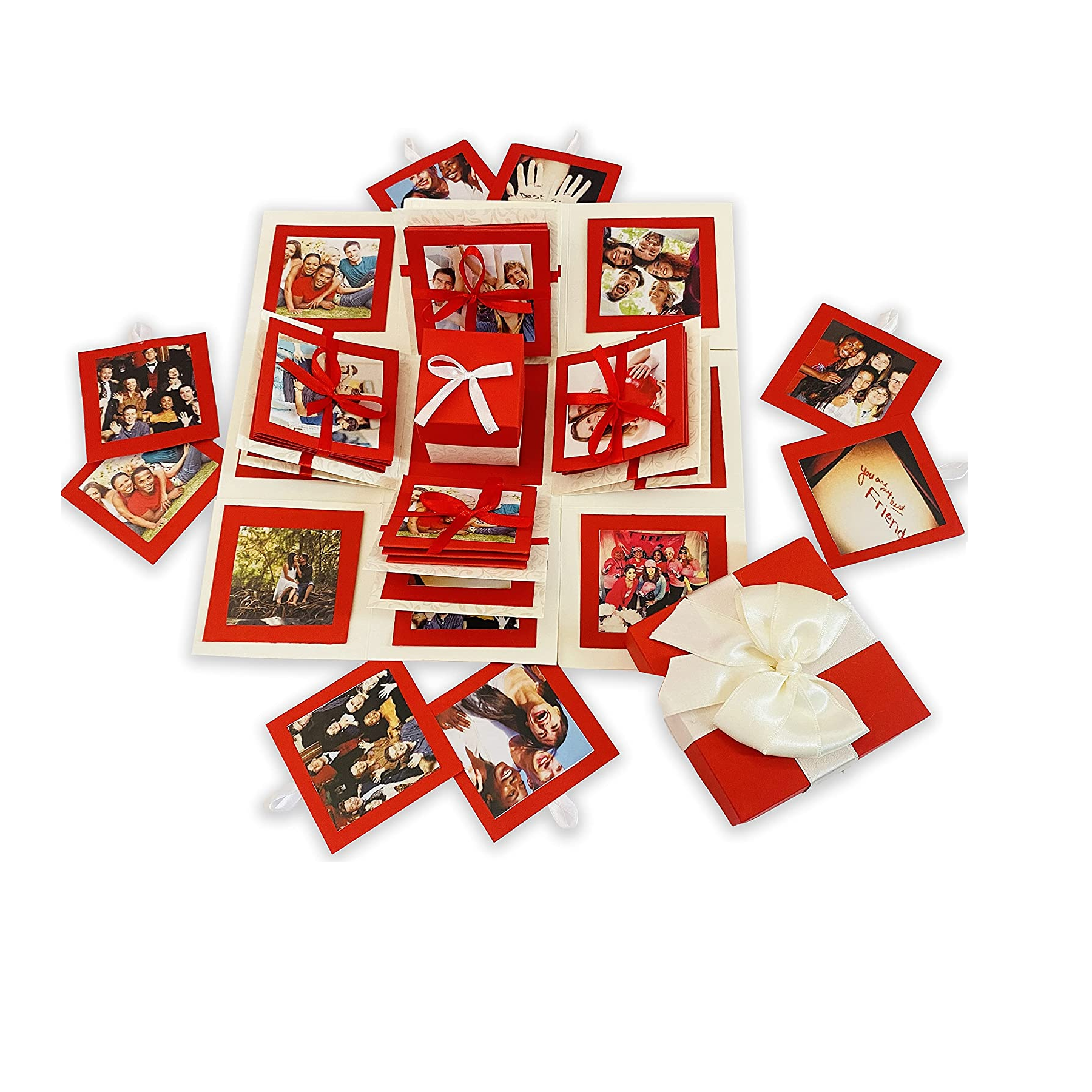 - This explosion box accommodates up to 20 photos and 8 messages to fill up the box and personalize it for your loved one.
