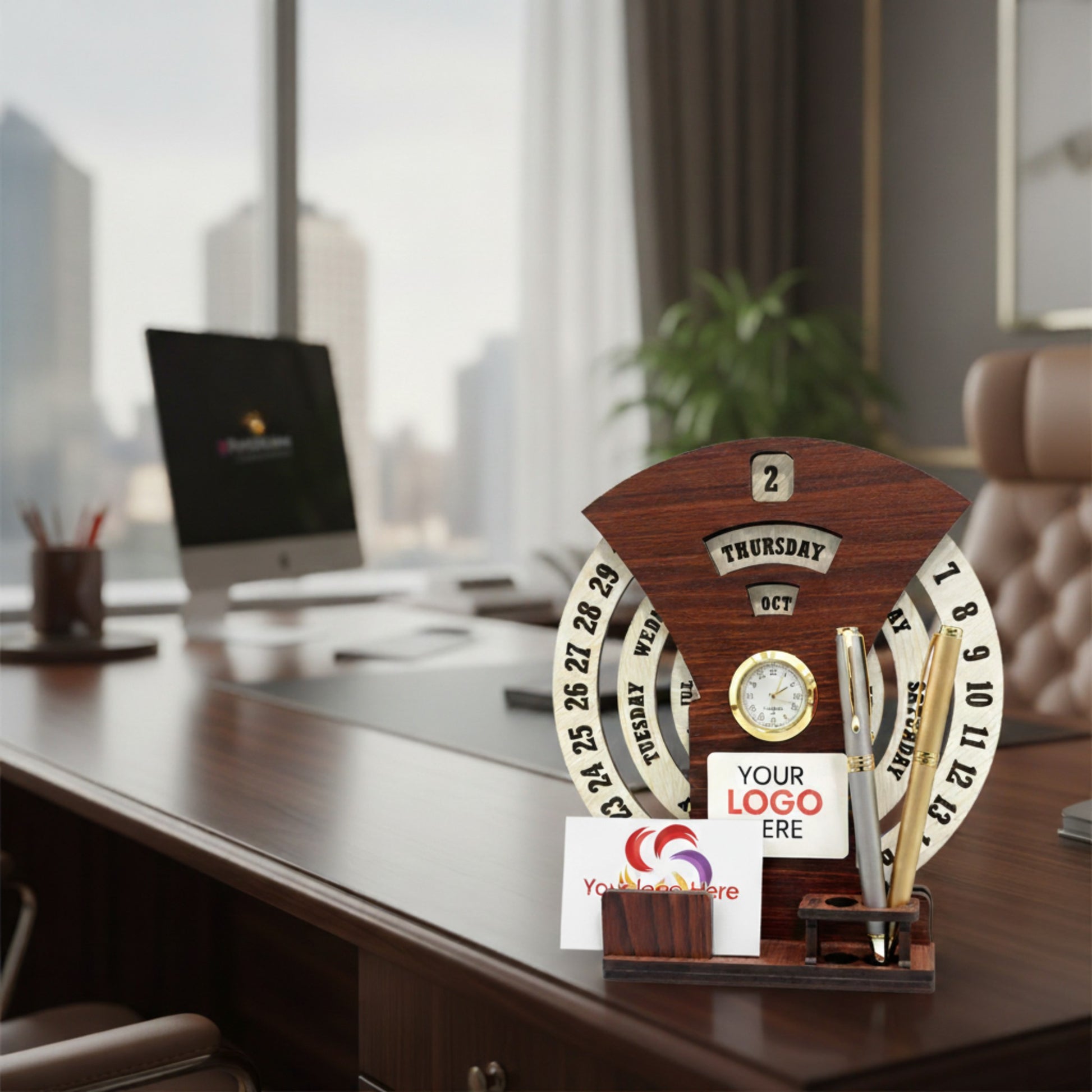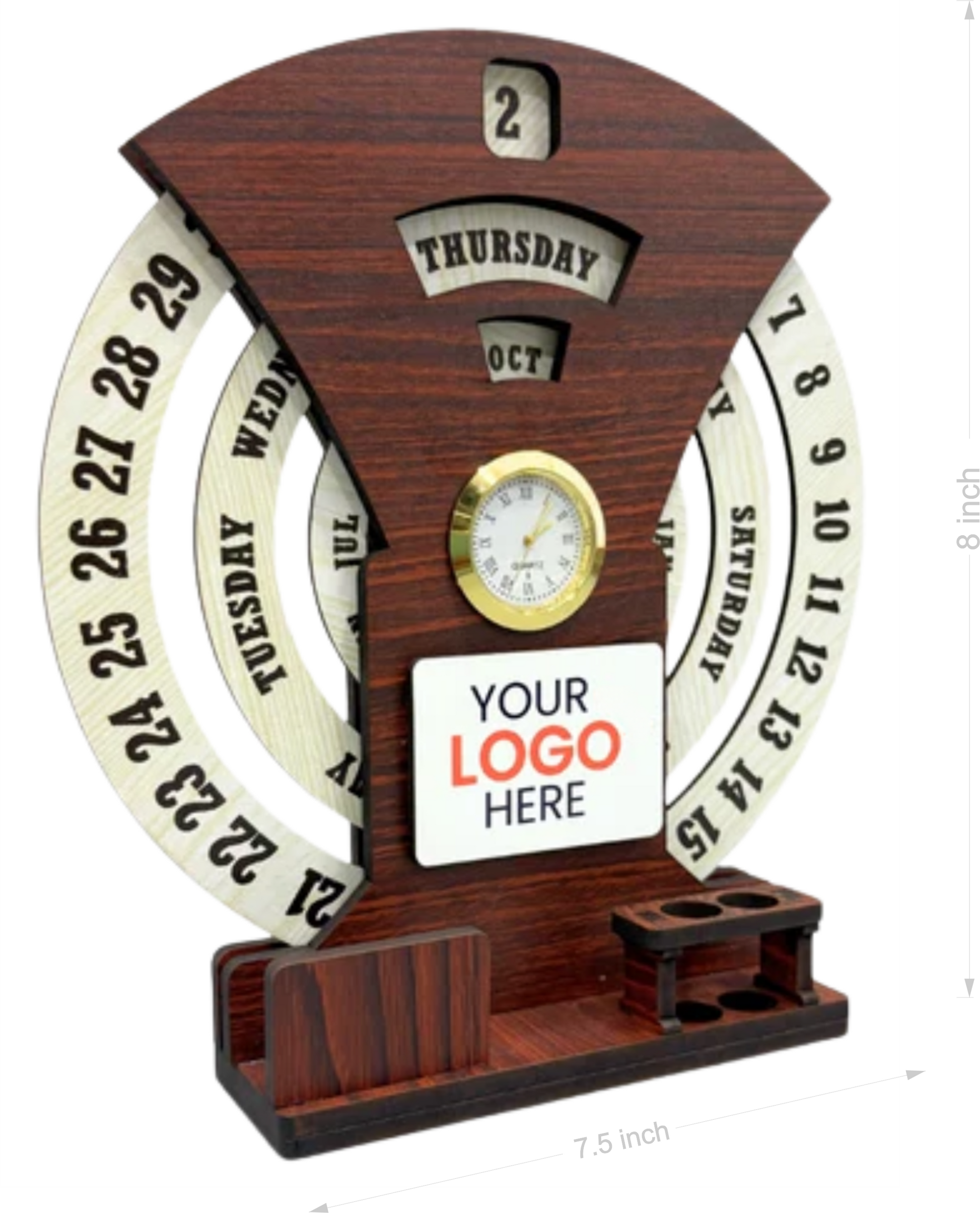 A timeless reusable forever desk calendar made from premium engineered wood (MDF). Features a large branding space to proudly showcase your logo & message, enhancing brand recall every single day. Elegant, compact & foldable — perfect for desks, cabins & reception areas.