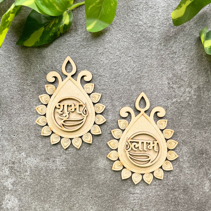 - Raw MDF Shubh Labh tags are made from 2 layers of 3 mm thick pine mdf and top layer is of 3mm thick.